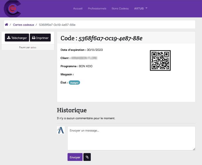 Les bons sont envoyés par courriel au bénéficiaire, un PDF est joint pour l'imprimer si besoin. Tous les bons sont téléchargeables à parti du Portail sur ce site.